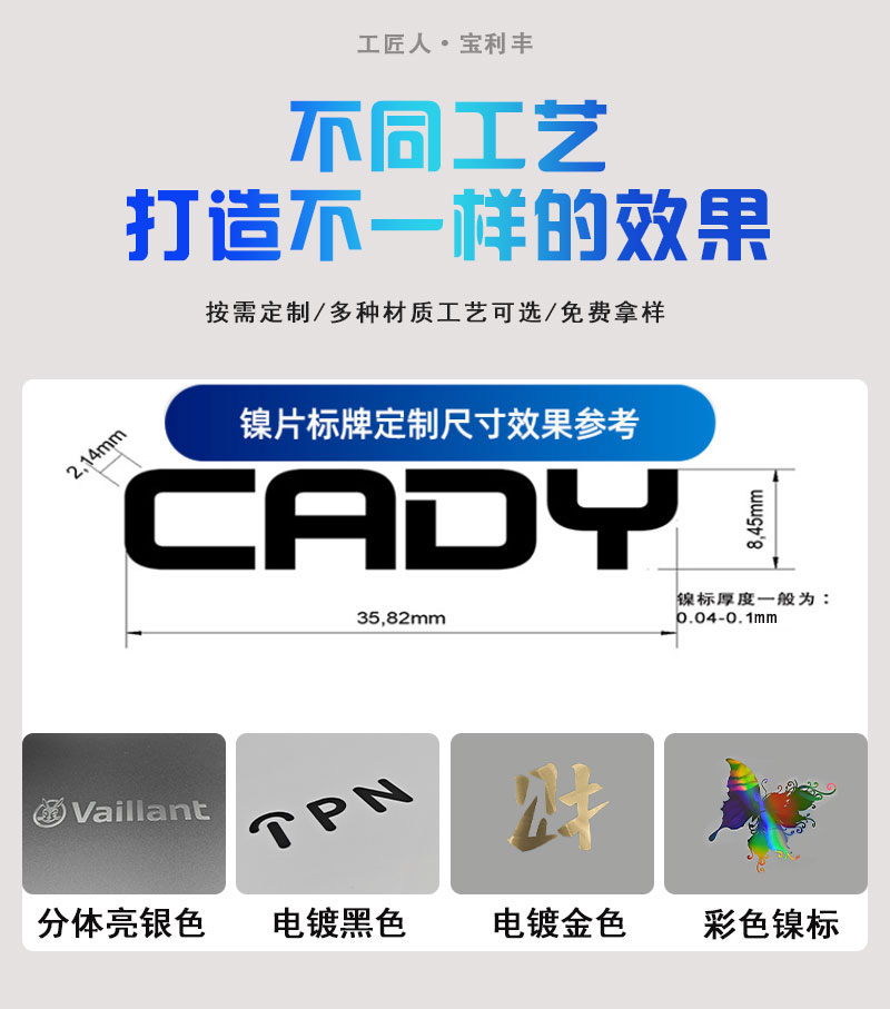 金屬電鑄鎳標簽,薄標工藝,純鎳材質,耐刮擦抗氧化,應該廣泛,適用于企業標牌、產品金屬logo、包裝標簽、電子產品標貼、汽車logo標貼、酒包裝標簽等。