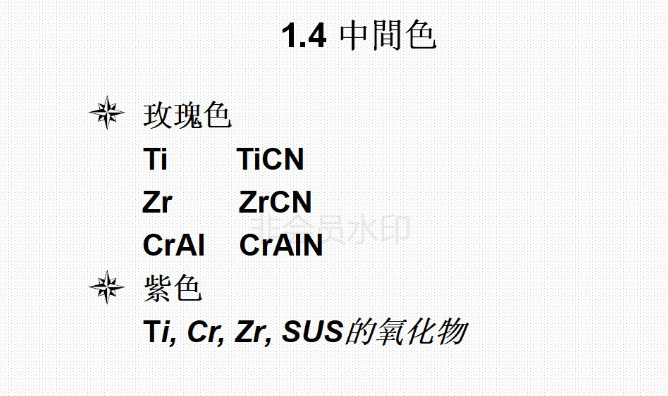5)、PVD技術(shù)不僅提高了 鍍膜與基體材料的結(jié)合強(qiáng)度,涂層耗材種類繁多,還有多元復(fù)合涂層,形成不同的顏色的表面效果。